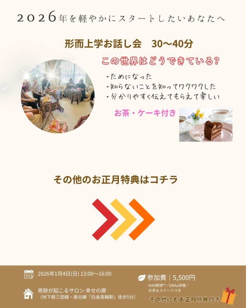 という人は、ぜひ、私たちの新年のお茶会にいらしてください。私たちが楽しく、どんな風に考えたらよいのかのヒントをお届けします。